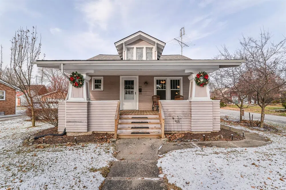 Cute as a button home on a corner lot in downtown Saline! Step up to the amazing large front porch perfect for relaxing with a cup of coffee. As you enter the front door you will love the original hardwood floors, and light filled family room. Fresh paint in the entryway through to the kitchen. The master bedroom has a walk in closet and the second bedroom has built ins. For added space, there is an enclosed porch that can be used as a mud room or sitting area. There is a second level with two rooms that are waiting for their new owner to finish up! updates include paint, front and back door, newer windows, newer hot water tank, newer furnace, front porch steps, and 2 new shut off valves. Sold as is.