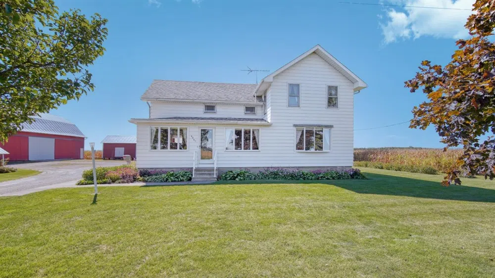 Traditional historic farmhouse on 5 acres. Not your average older farmhouse. This 2550 sq ft charmer has had plenty of renovations to make it solid and more modern. Large rooms with fantastic plaster walls on the entry level, plus beautiful stained woodwork throughout. Full depth standard basement was constructed around 1960. Kitchen was updated around 2000 with ample cabinet space and modern appliances. At the same time a new entry level bath and laundry combo were added. A new, fully insulated, 2 car attached garage and entryway were added around 2000. Home has 5 bedrooms, all with large closets for an older home, and one full bath and 2 half baths. Extremely well insulated, with thermo-pane windows. Home has security alarm installed and operating. New roof in 2012. City water and natura natural gas are at this home. No stinky well water and expensive propane. Older well is still available. Outbuildings are awesome and include a 32x96 barn with full concrete floors and steel roof and steel siding, 16x24 granary, chicken coop, round steel grain bin, and finally a classic corn crib. This home has a lot to offer. Splitting off home on 5 acres and outbuildings, but more acreage is available if desired. Call Ed for info.