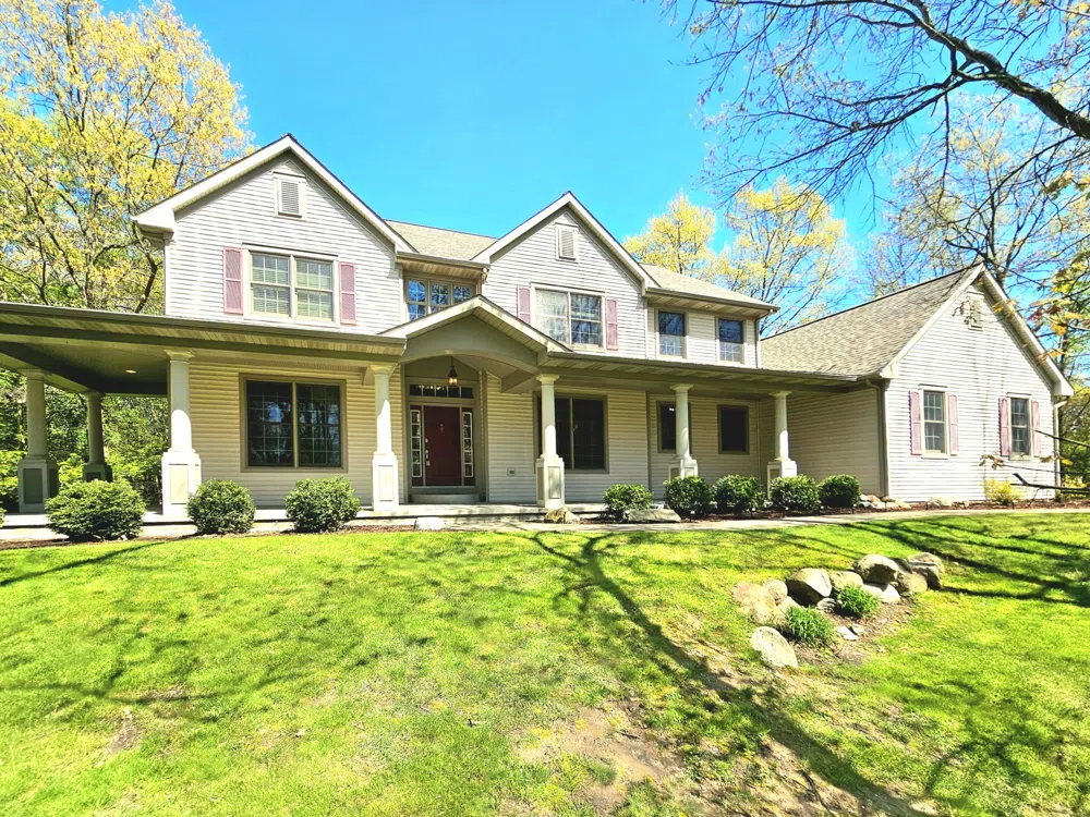 NEW ROOF (May 2025 50yr shingles & warranty) 6290 East Bay Ln Richland, MI - 2003 custom traditional boasts nearly 4,000 sq ft, steel I-beam support, Office or Den, pass through fireplace, chef's kitchen with granite, Wolf gas cooktop, double ovens, all appliances stay! 2022 Generac Auto switch Generator. Features 4 bedrooms (potential 5th with ensuite rough-ins), 2.5 baths, REFINISHED hardwoods, NEW carpet, finished lower level with rec room, potential workout/theater room, & large laundry room. Enjoy a premium fenced backyard, oversized 3-car garage with attic storage, & community perks: snow removal, kayak stations, tennis, & more! Immediate occupancy, nature lovers will adore 7ace park. Affordable HOA. Professionally cleaned, move-in ready! Hidden gem in Southwest MI!